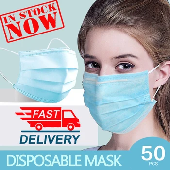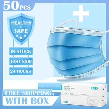 AliExpress.com Product - CC Disposable Masks Face Mask Mascherine 3 Layer Non woven Safe Masque 50pcs Protection Health Earloops Maska Fast Delivery